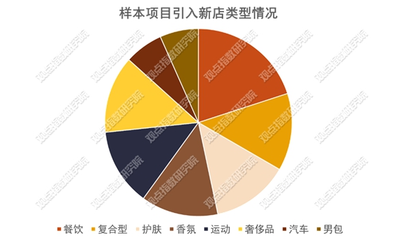 從樣本項(xiàng)目引入的具體業(yè)態(tài)類(lèi)型上看,餐飲品牌占比最多,其中更以甜品類(lèi)的為主,其次是以美妝、香氛類(lèi)為代表的零售型業(yè)態(tài)?梢钥闯,餐飲和零售依然是當(dāng)前零售商業(yè)項(xiàng)目招商調(diào)整的重要方向。