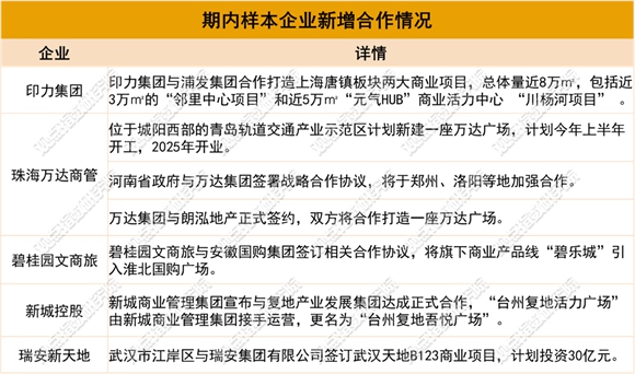 企業(yè)新增合作上,以輕資產(chǎn)為主要業(yè)務(wù)的企業(yè)如珠海萬(wàn)達(dá)商管等較為活躍。