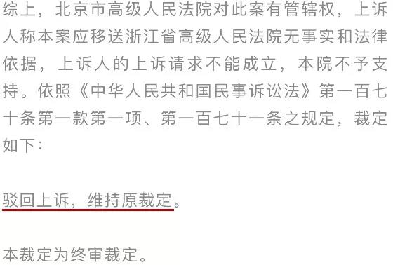而這一次審判結(jié)果,只是對案件管轄權(quán)做了終審判決,而不是對阿里是否搞二選一是否違法做出了判決。因?yàn)樘熵埦桶讣茌牂?quán)應(yīng)該歸屬浙江省高級人民法院。當(dāng)然目的也很好理解,杭州是阿里的地盤,而北京是京東的地盤。歸屬地關(guān)系著各自的主場優(yōu)勢,如果管轄權(quán)是杭州的,京東基本就別抱希望了。這個在以往的互聯(lián)網(wǎng)公司之間的訴訟中,已經(jīng)非常清楚了。因此很明顯:在這場沒有硝煙的戰(zhàn)爭中,阿里先敗了一節(jié),而京東有機(jī)會可能贏。