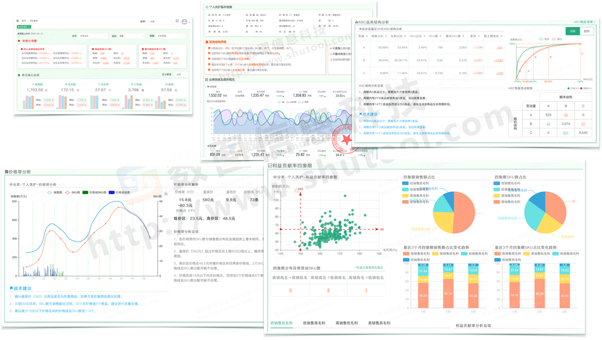 其他的經(jīng)營(yíng)實(shí)體、部門、活動(dòng)都是一樣的道理。甚至我們可以在經(jīng)營(yíng)過(guò)程中不 斷完善、調(diào)整這些指標(biāo)。目的是能夠給我們提供一個(gè)相對(duì)可量化的評(píng)估體系,讓我們對(duì)企業(yè)每個(gè)環(huán)節(jié)的把握更清晰、更具有針對(duì)性。數(shù)圖信息在多年的摸索中,針對(duì)企業(yè)管理的大部分業(yè)務(wù)場(chǎng)景建立了相應(yīng)的評(píng)估模型,以評(píng)估報(bào)告的形式展現(xiàn)出來(lái),而且這個(gè)過(guò)程都是全自動(dòng)的。其中包括品類分析報(bào)告、門店健康體檢報(bào)告、商品淘汰報(bào)告、促銷活動(dòng)評(píng)估報(bào)告、會(huì)員購(gòu)物行為分析報(bào)告等等。以全面的角度、直觀的數(shù)據(jù)表現(xiàn)形式,反應(yīng)出經(jīng)營(yíng)的實(shí)際情況。我們?cè)卺槍?duì)某個(gè)具體部門、品類、門店、甚至某次營(yíng)銷活動(dòng)進(jìn)行研討的時(shí)候,就可以調(diào)出相應(yīng)報(bào)告,全面剖析每一個(gè)指標(biāo)細(xì)節(jié)。