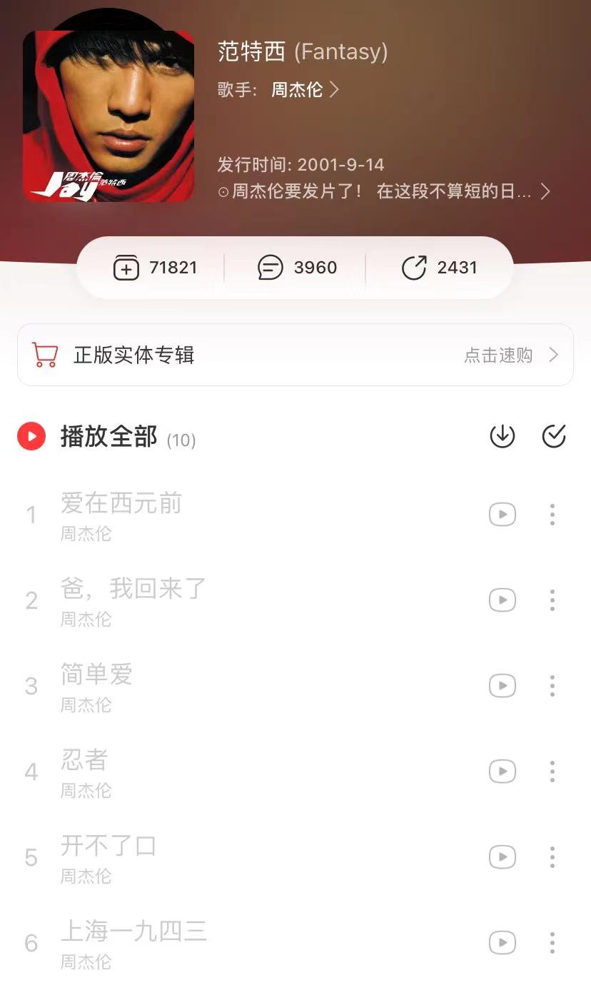網(wǎng)易云依舊聽不了周杰倫,圖/網(wǎng)易云音樂App