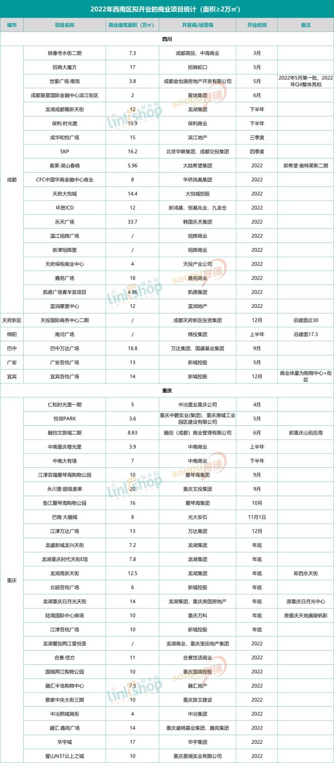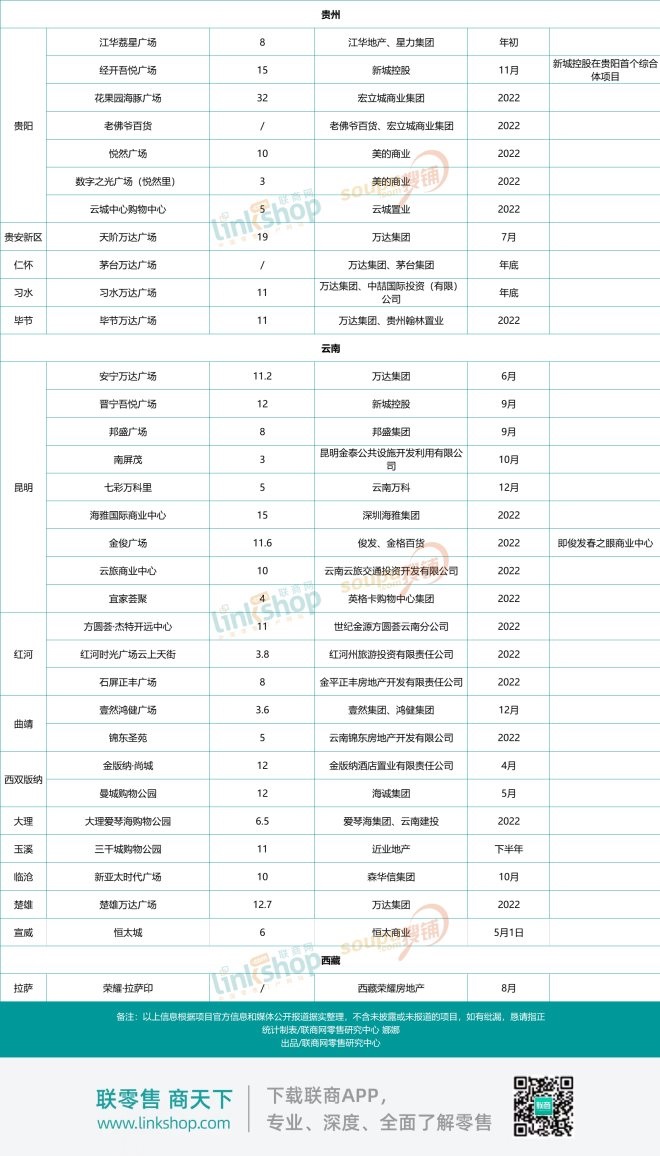 附2022年西南區(qū)域擬開(kāi)業(yè)商業(yè)項(xiàng)目統(tǒng)計(jì):