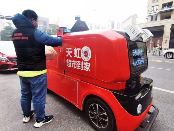 1月17日,天虹超市聯(lián)合國內(nèi)領(lǐng)先的無人車配送企業(yè)——白犀牛,在深圳坪山正式推出無人車配送服務(wù)。隨著工作人員將打包好的商品放入車廂,萌感十足的“小虹車”從超市出發(fā),踏上了天虹智能化配送的新征途。由此,天虹也正式成為深圳首個推出無人車配送服務(wù)的實體零售企業(yè)。
