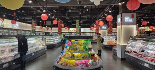 在生鮮品類上增加快手菜預(yù)制菜來滿足輕快的生活節(jié)奏,拓寬快手菜及熟食品類寬度開發(fā)出低脂低熱量健康為主題輕食商品作為熟食類別新的引擎。擴(kuò)大冷藏冷凍區(qū)域,凸顯優(yōu)質(zhì)乳品,以特色地域商品作為新的亮點,比如船歌、廣州酒家、川西美食、東來順、柳州螺螄粉等。