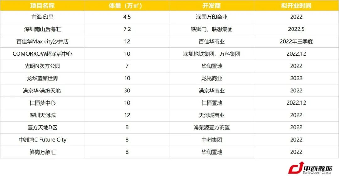 后海匯、中洲灣C Future City、COMORROW 超深活中心、仁恒夢(mèng)中心等重磅項(xiàng)目2022年擬開業(yè)。
