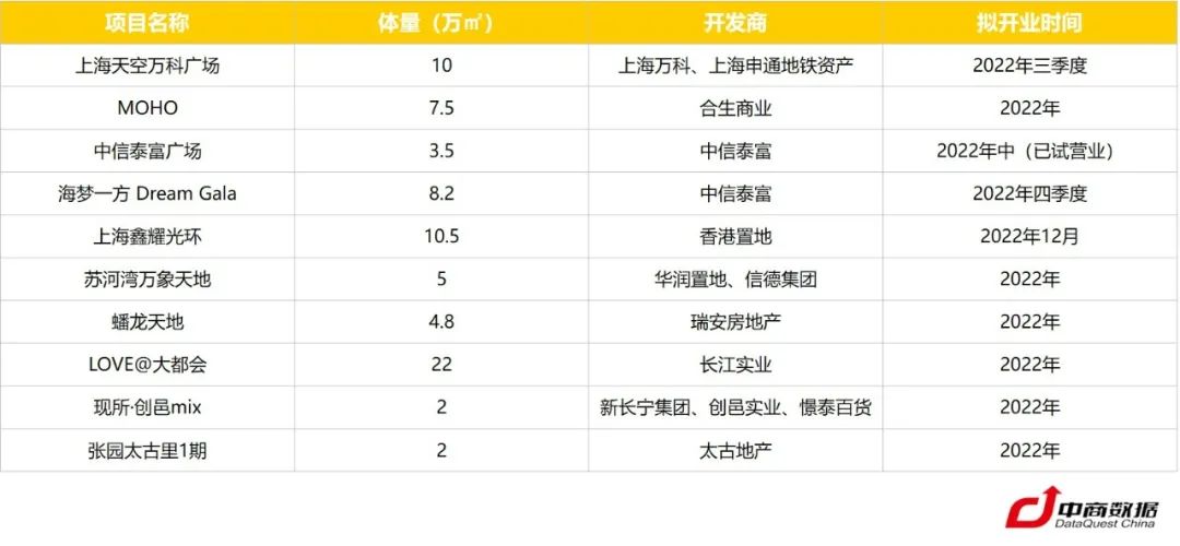 2022年上海部分?jǐn)M開業(yè)項(xiàng)目