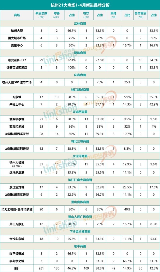 1-4月杭州21家商場新店、首店大掃描 同比變化驚人