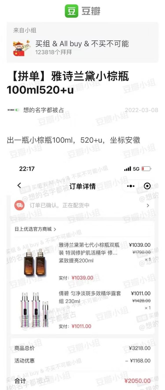 豆瓣上的雅詩(shī)蘭黛拼單貼
