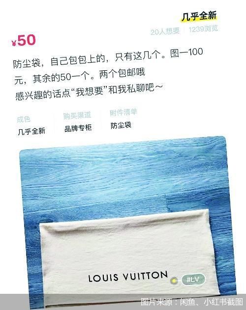 你手中的LV、Gucci包裝袋怎么處理?這些你當廢品扔掉的包裝袋,在閑魚上能賣200元。近日,北京商報記者瀏覽閑魚App發(fā)現(xiàn),銷售奢侈品包裝袋的商家比比皆是,粗略統(tǒng)計,LV包裝袋在售人數(shù)就有40家左右。同樣,Gucci、香奈兒等其他奢侈品牌包裝袋也均有部分賣家在售。