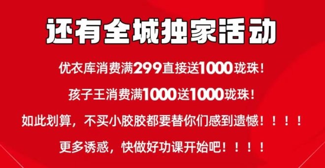 3.核心主力店——優(yōu)衣庫力度“火力全開”。當(dāng)我第一次看到優(yōu)衣庫活動時,我以為是“筆誤”,落實(shí)了一下沒想到是真的,這不就是299送100嘛?相當(dāng)于7.5折,這力度著實(shí)不低了,再加上優(yōu)衣庫的開業(yè)活動,力度可謂非常不錯了?梢娫擁(xiàng)目也發(fā)現(xiàn)其最主要差異化競爭力在于優(yōu)衣庫,對此全力一擊,集中優(yōu)勢兵力攻其一點(diǎn),此舉是十分必要、也是極為有效的。