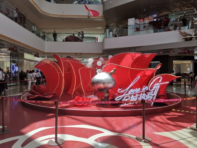 7.內(nèi)場美陳結(jié)合軟裝做了一個“藝術(shù)裝置”,但由于現(xiàn)場用一米線隔離,沒看明白到底是怎么互動,也沒看出來它與開業(yè)主題有什么聯(lián)系,總之略有些割裂感。