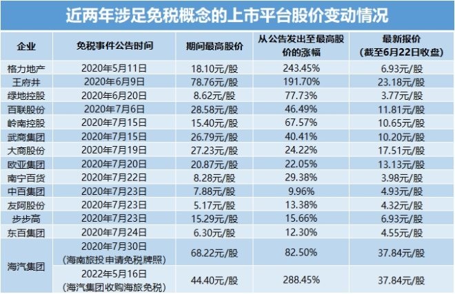 2020年那個夏天,《海南自由貿(mào)易港建設(shè)總體方案》問世,免稅熱度飆升,凡是與免稅概念沾邊的公司,股價必然如同乘坐火箭般猛然拉升。