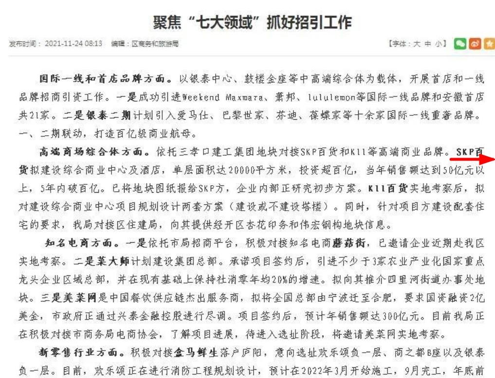 不過隨后,合肥高新區(qū)管委會否認(rèn)了該消息,并稱SKP是否入駐高新區(qū)還未確定。此后,并無高新區(qū)引入SKP的消息。