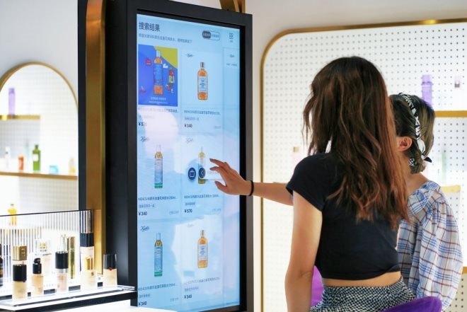 顧客走進云店,可以通過商品體驗區(qū)、導(dǎo)購的講解了解商品。注冊成為銀泰百貨的數(shù)字化會員后即可在“云屏”下單,商品包郵到家!叭珖]” “定時達” “60天無理由退換貨”等銀泰百貨的服務(wù)也在云店通用。