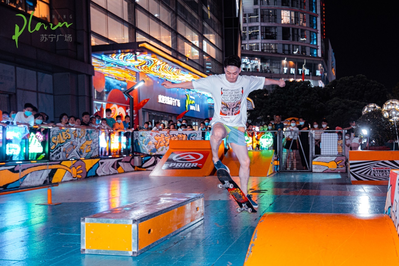 福州蘇寧廣場,打造了800平米飛盤基地、320平米的潮流滑板街區(qū)、800平米籃球競技場、1000平米的蘇喂潮流美食街區(qū)四大潮流空間,在這個(gè)小長假讓福州市民盡享極致潮趣體驗(yàn)。