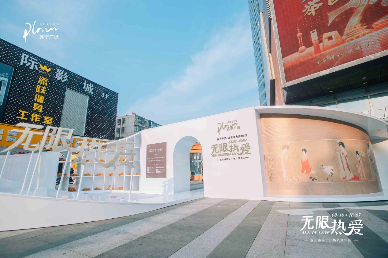 正值八周年慶,連云港蘇寧廣場聯(lián)合連云港博物館打造了ALL IN LOVE無限熱愛藝術(shù)美陳,鏈接城市文化名片。美陳活動(dòng)整體圍繞館內(nèi)文物西漢《神烏傅》竹簡為原型進(jìn)行創(chuàng)作,以漢字多樣的形態(tài)進(jìn)行雕刻展示,同步配合館內(nèi)古琴、漢舞、竹簡書寫互動(dòng),充滿了古典文化意趣。