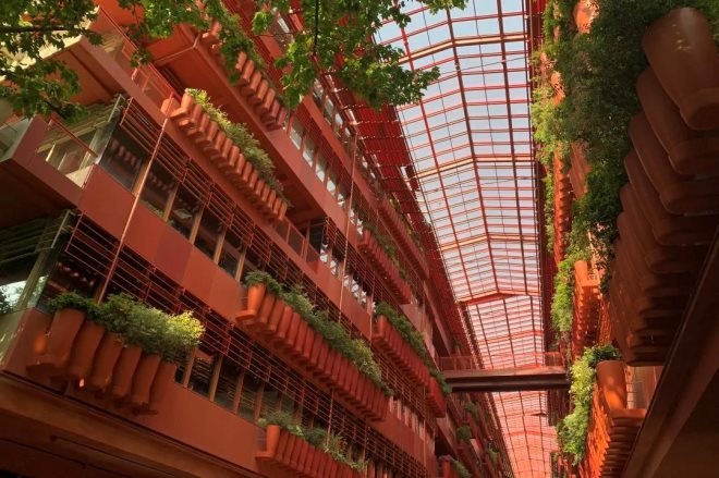 但交付使用后,很少有人這樣做。和這些白領(lǐng)們溝通的答案是,一方面因?yàn),窗外的綠色讓人心曠神怡;另一方面,植物的掩映給予了租戶安全感,“往植物后面一縮,就能藏起來(lái)了”。