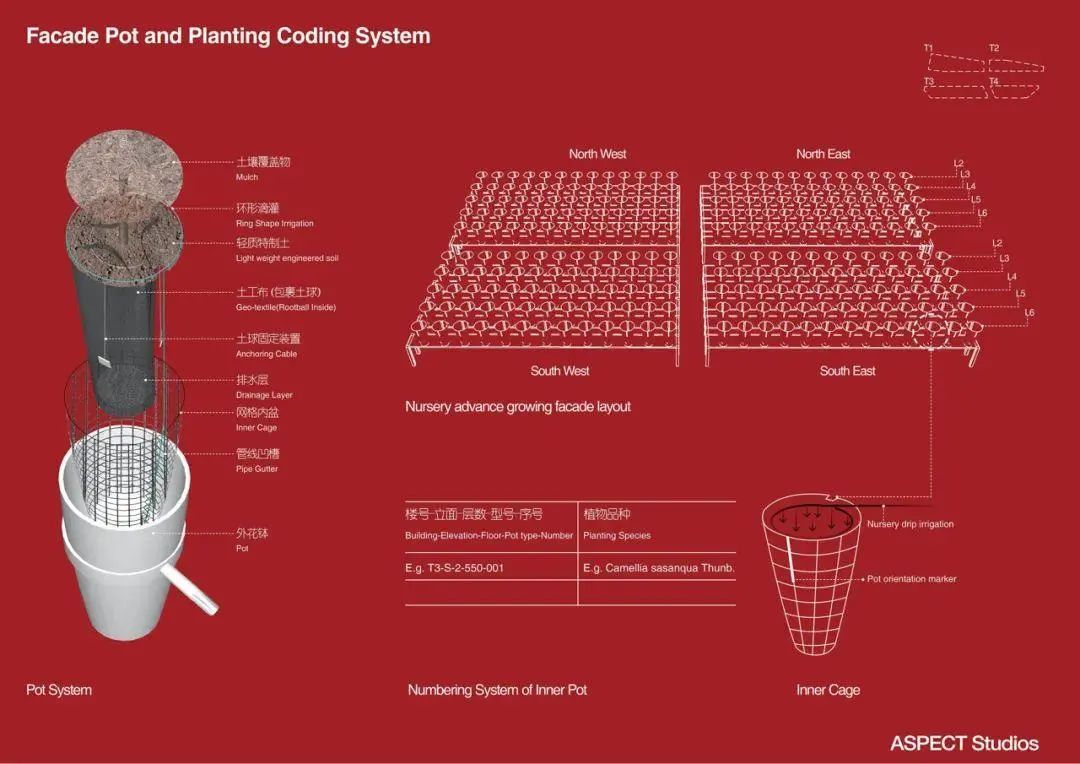 然后,根據(jù)樓棟、立面、樓層、朝向、花缽位置,以及植物種類,給每個(gè)花盆編了個(gè)號(hào),從而明確掌握每個(gè)花盆內(nèi)植物的季節(jié)性生長(zhǎng)情況。