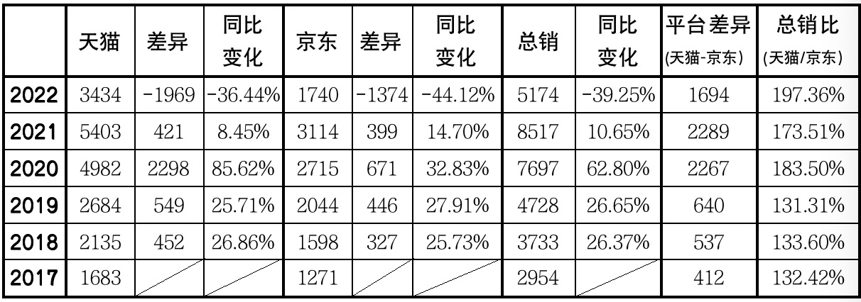 ·兩平臺總銷下滑均超千億,天貓下滑近2000億,而京東同比下滑超44%,幾近腰斬;