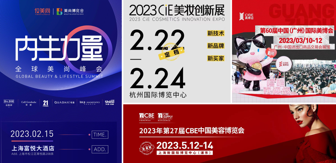 《未來跡Future Beauty》觀察到,第一個(gè)市場熱起來的明確信號是:行業(yè)展會紛紛重啟。2月的儀美尚美尚博覽會、2023CiE美妝創(chuàng)新展,3月的中國(廣州)國際美博會,以及在2022年一再延期的CBE中國美容博覽會也將于5月再次開幕。顯然,上半年的行業(yè)展會已經(jīng)行程拉滿,商務(wù)交流勢必將更密切高效。