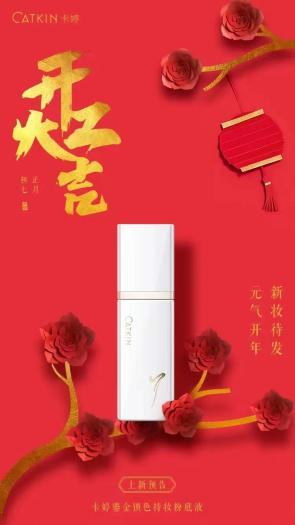 本土新銳彩妝品牌卡婷的創(chuàng)始人陳僑川也發(fā)布朋友圈稱“鎏金鎖色持妝粉底液”即將上線。