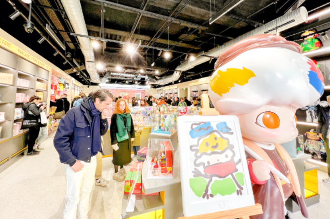 2月26日,泡泡瑪特法國(guó)首家線下門(mén)店在巴黎沙特萊廣場(chǎng)Forum des Halles正式開(kāi)業(yè),這也是泡泡瑪特在歐洲市場(chǎng)的首家直營(yíng)店。