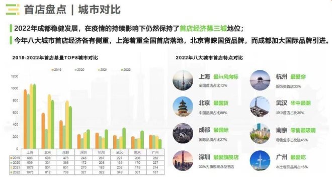 3月3日,由中商數(shù)據(jù)和成都零售商協(xié)會聯(lián)合發(fā)布的《2022年度成都首入品牌研究》報告指出,2022年,成都首店經(jīng)濟邁入高質(zhì)量發(fā)展新階段,成都全年引入708家首店,保持了首店經(jīng)濟第三城地位。