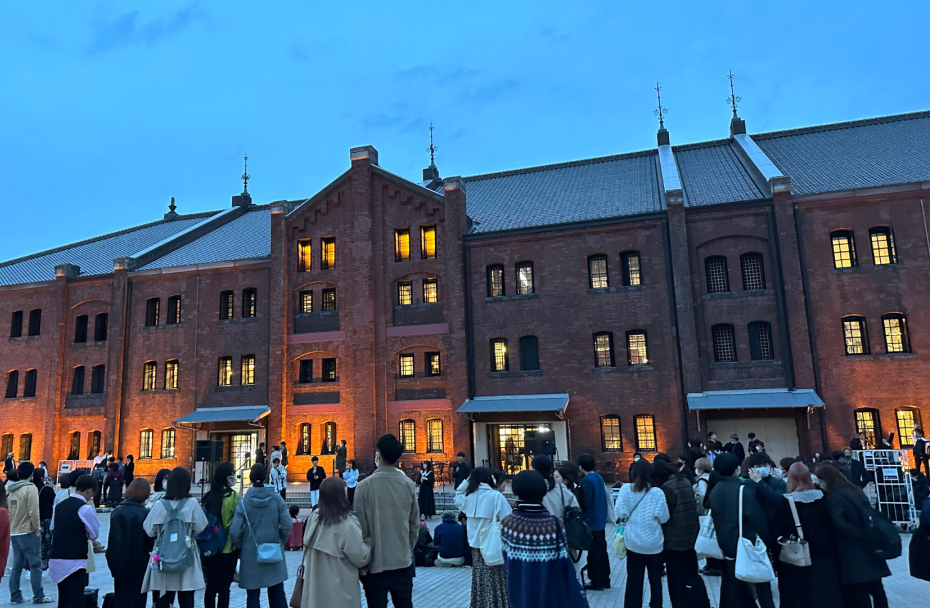 夜幕降臨,整個(gè)紅磚倉庫從地面亮起橙色燈光,照明的同時(shí)為建筑外墻增添了一份年輕與活力,與依然未散去的年輕人一起,成為橫濱不眠的夜景。