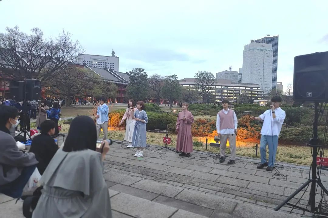 我們參觀的那天,廣場上有十幾組年輕人的駐場點(diǎn),全都裝備齊全、連服裝都有精心設(shè)計(jì)。整個(gè)廣場沉浸在此起彼伏的歌聲之中。