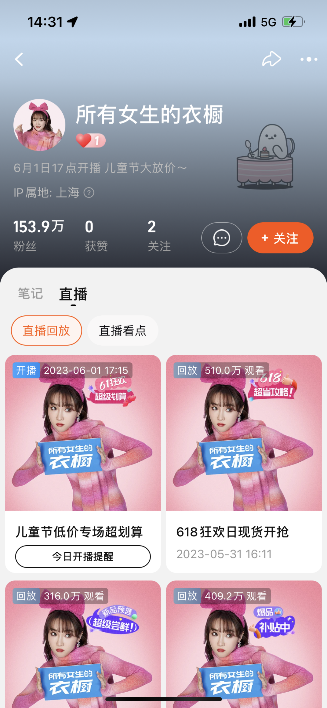 截自天貓“所有女生的衣櫥”直播間主頁