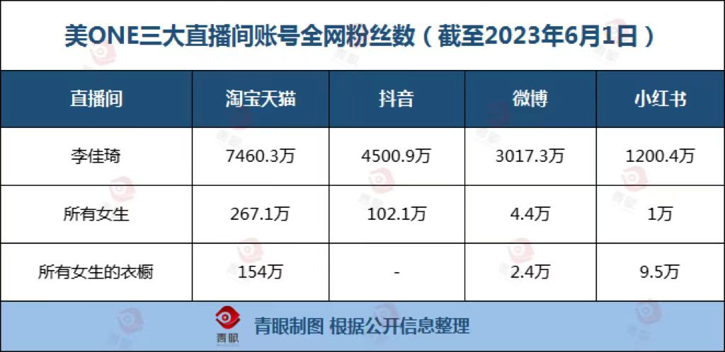 青眼對(duì)比發(fā)現(xiàn),目前在美ONE三大直播間中,“李佳琦直播間”全網(wǎng)粉絲數(shù)仍是遙遙領(lǐng)先,均突破千萬級(jí)別,其中淘寶天貓平臺(tái)粉絲數(shù)更是達(dá)到了7438.2萬。而所有女生直播間、所有女生的衣櫥直播間雖然在淘寶天貓平臺(tái)達(dá)到了百萬級(jí)別,但仍不及李佳琦直播間粉絲數(shù)的十分之一。