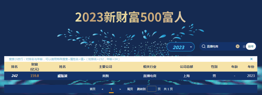 不過,戚振波并非首次登榜的直播電商企業(yè)實(shí)控人。青眼檢索到,2021年,黃薇(薇婭)、董海峰夫婦就曾以90億元財(cái)富首次進(jìn)入當(dāng)年的新財(cái)富500富人榜,排名第490位。而今年,戚振波首次登榜便以159.8億元的財(cái)富值躋身榜單中列(第242名),也從側(cè)面反映出直播電商行業(yè)發(fā)展之迅猛。