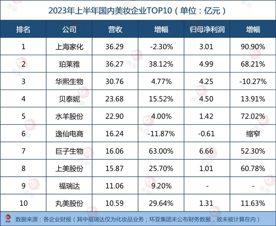 從今年上半年的財(cái)務(wù)數(shù)據(jù)來看,頭部美妝企業(yè)仍牢牢守住其市場地位,且前十名單整體變動(dòng)不大。而不變當(dāng)中,也出現(xiàn)了一些新變化——