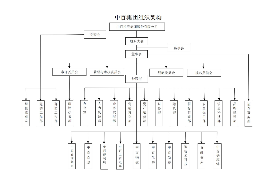 目前,中百集團(tuán)由原單體百貨店發(fā)展為擁有分布在湖北、重慶、湖南三地的連鎖網(wǎng)點(diǎn)1700余家,經(jīng)營面積超170萬㎡,員工總數(shù)近2萬人,資產(chǎn)總額逾100億元,年?duì)I業(yè)收入近130億元,規(guī)模銷售近280億元的大型商業(yè)集團(tuán),擁有綜合超市、社區(qū)超市、24H便利店、購物中心、電器專賣、智慧物流、食品工廠、零售科技、塑料制品生產(chǎn)等多種業(yè)態(tài)。