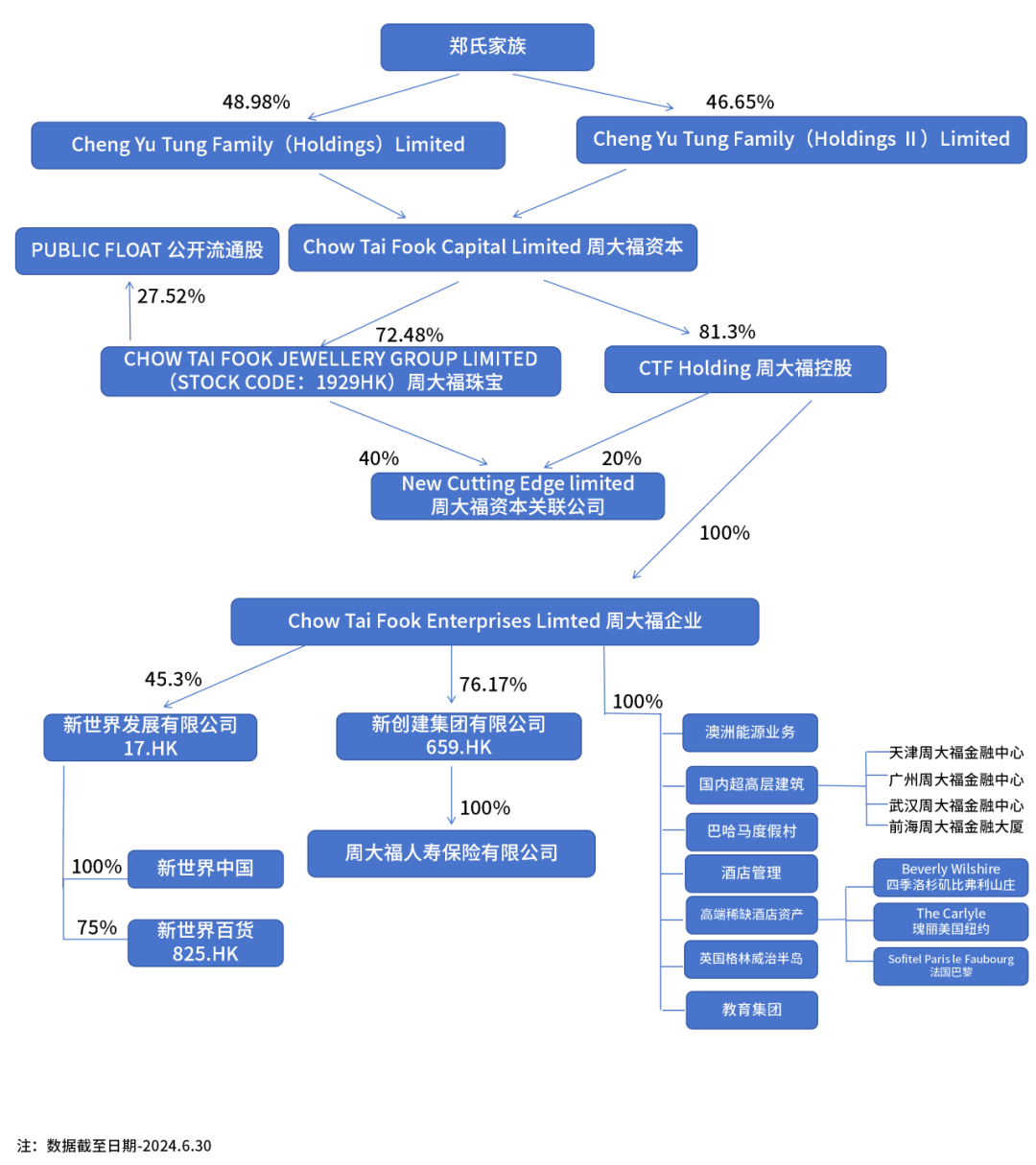 梳理鄭氏家族的商業(yè)版圖,如同抽絲剝繭。家族產(chǎn)業(yè)橫跨珠寶、地產(chǎn)、基建、保險等多個領(lǐng)域,旗下多家上市公司錯綜相連,織就起一張復雜而龐大的商業(yè)網(wǎng)。盤根錯節(jié)猶如榕樹根系般的結(jié)構(gòu),使鄭家的傳承與演變始終成為業(yè)界關(guān)注的焦點。