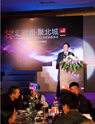主持人一一向現(xiàn)場的來賓介紹了到場的領(lǐng)導(dǎo)嘉賓,北城置業(yè)的總經(jīng)理胡思新作了致辭,他首先對(duì)新老客戶朋友的到來表示歡迎,然后回顧了2011年美達(dá)·北城天地的進(jìn)程情況,并對(duì)新老客戶一路以來的支持與關(guān)注表達(dá)了誠摯感恩。