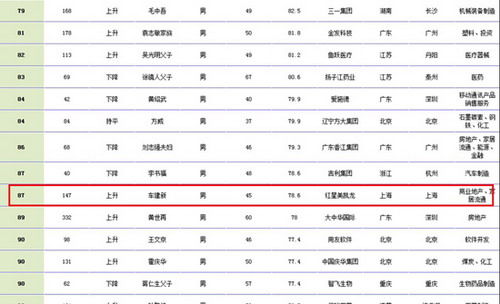 家居行業(yè)巨頭——紅星美凱龍董事長(zhǎng)、首席執(zhí)行官車(chē)建新入主2011年福布斯中國(guó)富豪榜100強(qiáng),去年147位今年87位有較大幅度上升,2011年財(cái)富值:78.6億人民幣。