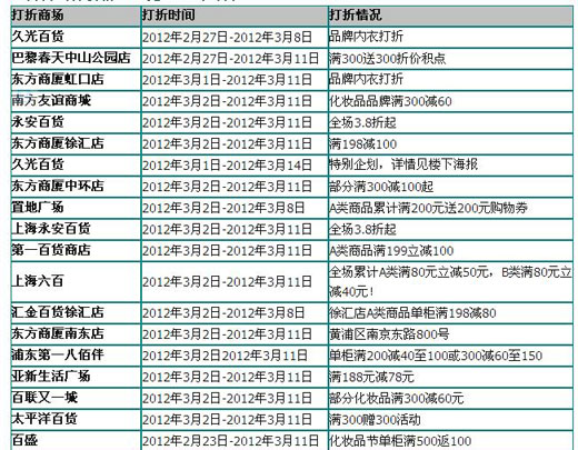 上海百貨商場三八女人節(jié)促銷打折活動:三八婦女節(jié)女人節(jié)商場打折信息集合
