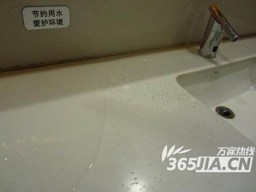 但是記者在洗手臺卻發(fā)現,由于設計的不合理,金鷹的水龍頭過短,會造成大部分的水灑到洗手臺臺面上,每洗一次手都要浪費很多的水灑到臺面上,而這和臺面墻壁上寫的“節(jié)約用水,愛護環(huán)境”的口號完全背道而馳。
