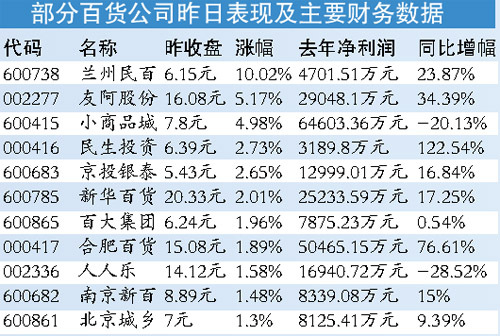 廣發(fā)證券首席分析師歐亞菲表示,2012年3月份全國50家重點大型零售企業(yè)零售額同比增長11.56%,算是如期出現(xiàn)反彈。根據(jù)廣發(fā)證券對海外零售市場估值和國內(nèi)行業(yè)絕對估值測算,20倍市盈率應(yīng)該是百貨公司行業(yè)合理估值中樞。值得注意的是,“一季度行業(yè)基本面數(shù)據(jù)已經(jīng)見底,雖然二季度未必會大幅回升,但最差的時期已經(jīng)過去。”歐亞菲認為,因此,基本面優(yōu)于行業(yè)的公司仍值得關(guān)注,業(yè)績彈性和估值彈性決定它們將有更高的超額收益。
