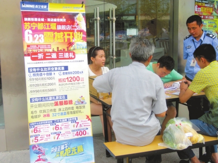 近幾天,蘇寧設(shè)在都江堰門(mén)店前面的咨詢(xún)點(diǎn)都被前來(lái)咨詢(xún)和辦理預(yù)存等業(yè)務(wù)的市民圍得水泄不通,而特別設(shè)置的咨詢(xún)電話也是一直響個(gè)不停。很多消費(fèi)者都因?yàn)榧磳㈤_(kāi)業(yè)的蘇寧都江堰旗艦店而專(zhuān)門(mén)調(diào)整了自己的家電購(gòu)置計(jì)劃,為的就是在這周末可以以最為實(shí)惠的價(jià)格購(gòu)買(mǎi)到自己喜歡的電器。