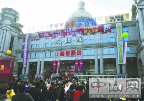 前日開業(yè),益華百貨太陽城店新張推出全場4.8折優(yōu)惠,還未開門,門口已經擠滿了等待進場的人群。廣東益華百貨有限公司總經理蘇偉兵打包票說:太陽城店開業(yè)第一年,同樣品牌的優(yōu)惠力度將比中山的其他老店大。目前益華百貨中山約有3.5萬會員,加上直營店都可以使用益華百貨的積分卡,他預計新店的促銷政策會有一定的吸引力。