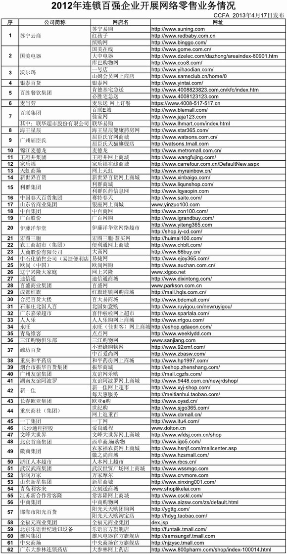 主題:2012年62家連鎖百強(qiáng)企業(yè)開展網(wǎng)絡(luò)零售業(yè)務(wù)