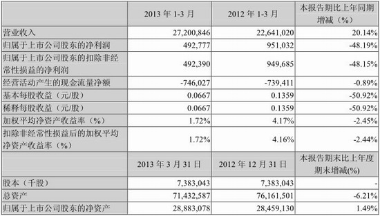 蘇寧云商Q1凈利同比降48.19% 聯(lián)商網消息:近日,蘇寧云商發(fā)布2013年第一季度報告,報告顯示,公司一季度實現營業(yè)收入272億元,同比增長20.14%;歸屬于上市公司股東的凈利潤4.93億元,同比下滑48.19%。