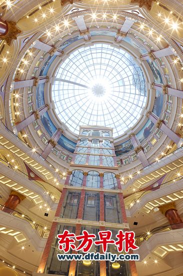 細節(jié)方面,中央大廳有很多威尼斯主題的設(shè)計;而分布在各處穹頂上的壁畫,有很多是航海主題的,反映了航海史。華鐳透露,設(shè)計之初如此注重環(huán)境、裝飾、設(shè)計的原因之一是,為了應(yīng)對電商的挑戰(zhàn)。“購物中心給人一種體驗,是城市生活的一部分,人不可能一直窩在房間里上網(wǎng),我們憑這個還能和電商抗衡一段時間。”