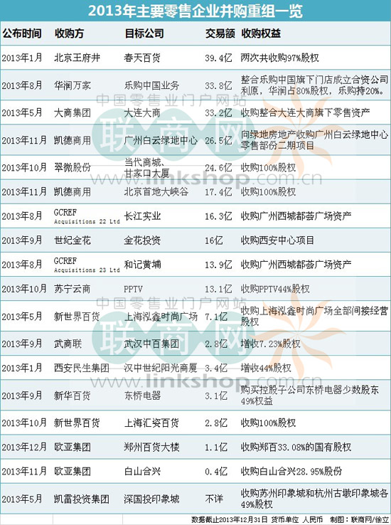 雖然以往零售市場不乏并購重組,不過,2013年市場環(huán)境這一現(xiàn)象更為凸顯。