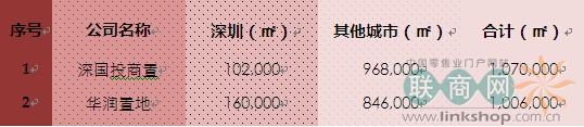 深圳一些有實(shí)力的開發(fā)商近幾年開始持有自己開發(fā)的商業(yè)物業(yè),甚至開始收購其他商家物業(yè)。通過幾年的努力,這些公司已經(jīng)持有大量的購物中心,包括在深圳的購物中心以及在其他城市的購物中心。其中持有購物中心面積最多的五家公司: