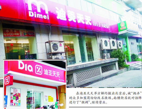 今年初,因加盟店過度擴(kuò)張和管理問題,經(jīng)營(yíng)不佳的迪亞天天在進(jìn)入中國(guó)市場(chǎng)十年后,宣布退出北京市場(chǎng),將拓展重心轉(zhuǎn)移到以上海為主的華東地區(qū)。而被迪亞天天“拋棄”的大量加盟主,除了部分選擇閉店外,其余靠近社區(qū)的門店均轉(zhuǎn)為個(gè)人經(jīng)營(yíng)。北京商報(bào)記者調(diào)查發(fā)現(xiàn),轉(zhuǎn)為個(gè)人經(jīng)營(yíng)的門店多延續(xù)了迪亞天天的折扣超市路線,但由于喪失了迪亞天天頗具特色的自有品牌,這些超市的貨品種類、質(zhì)量及服務(wù)均較此前有所下降。