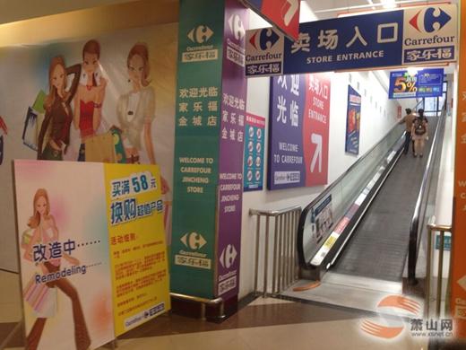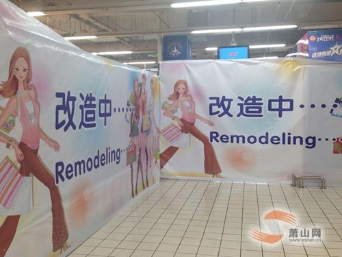 8月21日,記者來到了金城路上的蕭山家樂福超市,仍在正常營業(yè)。在各個電梯口,都擺放著“改造中”的公告牌。隨后記者采訪了超市店長,據(jù)李店長介紹:“我們現(xiàn)在并沒有接到超市要關(guān)門停業(yè)的通知,目前因為業(yè)務(wù)等方面的需要,正在進(jìn)行改造。”至于為什么出現(xiàn)部分貨柜商品空缺的現(xiàn)象,她解釋,這也是改造的一部分,“我們會把部分商品的位置稍作調(diào)整,并不是在清倉處理”。