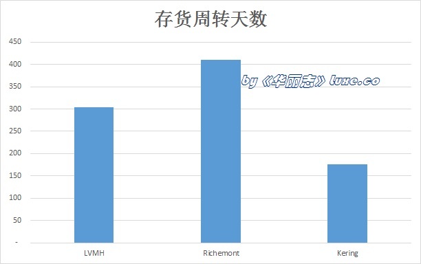 根據(jù)統(tǒng)一標(biāo)準(zhǔn)計(jì)算的存貨周轉(zhuǎn)天數(shù),Kering 存貨管理能力最突出,周轉(zhuǎn)天數(shù)僅 177天 - 同樣,這也與它旗下包括了相當(dāng)比例的存貨周轉(zhuǎn)相對較快的運(yùn)動(dòng)休閑類產(chǎn)品有關(guān)。